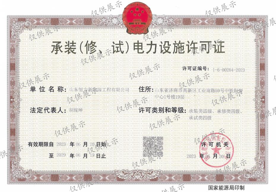 從國家能源局山東監(jiān)管辦公室傳來喜訊,我司于2023年6月申報(bào)的“承裝(修、試)電力設(shè)施四級”資質(zhì)獲準(zhǔn)通過![...]